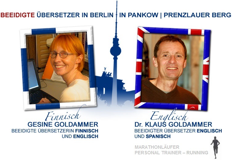 | Beeidigte Übersetzer in Berlin | in Pankow | Prenzlauer Berg | | Gesine Goldammer | Beedigte Übersetzerin Finnisch und Englisch | Dr. Klaus Goldammer | Beeidigter Übersetzer Englisch und Spanisch | | © konzeption, design und programmierung: cindy drzymala, cindy.d.design |